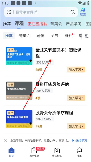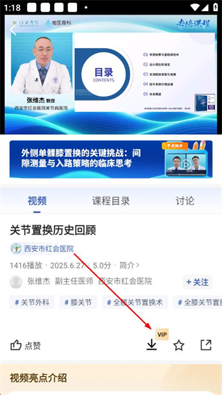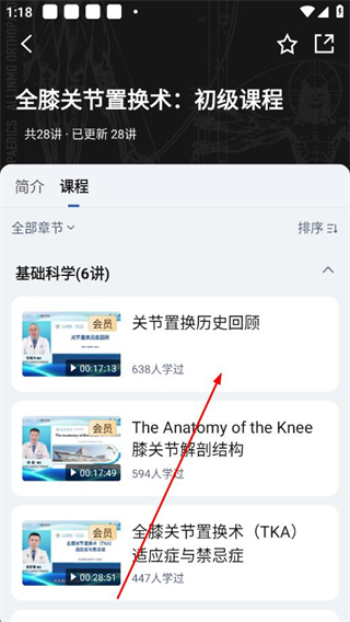 1、在唯医app的“课程”页面,选择目标课程,进入课程详情页。