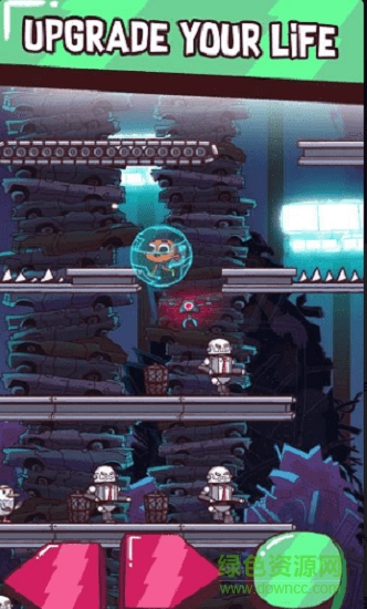 2、遇到障碍物时按绿色按钮穿越并击败敌人;