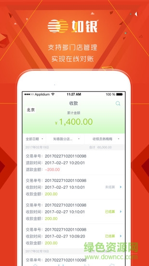 如银商家软件是一款非常好用的商家管理app,支持在手机上进行收账、管理门店,支持多门店同时管理,查看详细的流水记录等,欢迎感兴趣的朋友到绿色资源网下载使用!