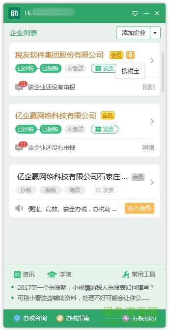 2.省去了一个一个插携税宝的麻烦,而且打开小助手就能一眼看见所有企业的抄报缴状态。