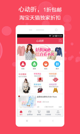 心动折能帮你随时随地发现淘宝、天猫、聚划算上面又好又便宜的商品,赶紧下载吧!