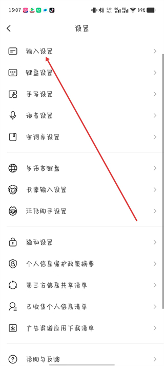 2、在设置页面,点击输入设置选项。