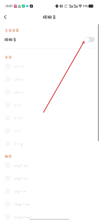 4、在模糊音页面,点击模糊音的开关。