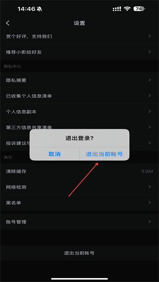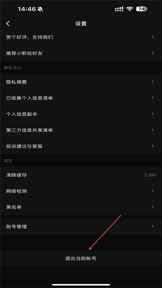 3、在设置的页面内,点击下方退出当前账号的按钮。