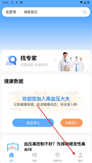 1、打开高血压大夫患者版APP,点击导航栏中的我的。