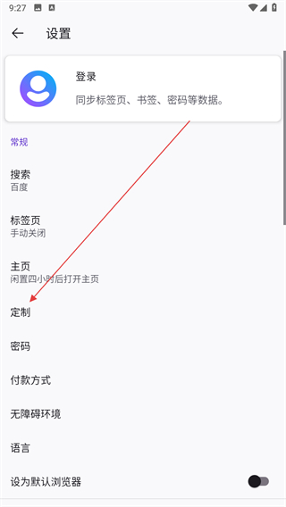 3、在设置页面的常规分类下,找到定制选项并点击进入对应设置界面。