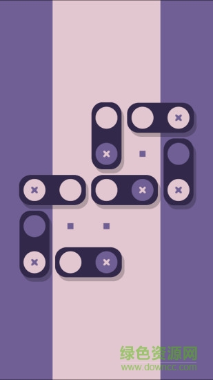 1.一个个圆角矩形条横亘在区域分界线上,矩形条两端带有不同颜色的圆形,你需要通过横竖滑行和顺时针旋转,将圆形色彩和屏幕底色一一匹配对应。