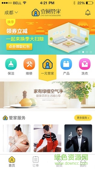 一元管家app是一款一站式上门服务软件,提供家电维修、保姆、保洁等服务,每日特惠服务不断更新,在线下单一键预约上门服务,价格优惠高效服务,解决用户各种家庭难题,欢迎来绿色资源网下载!