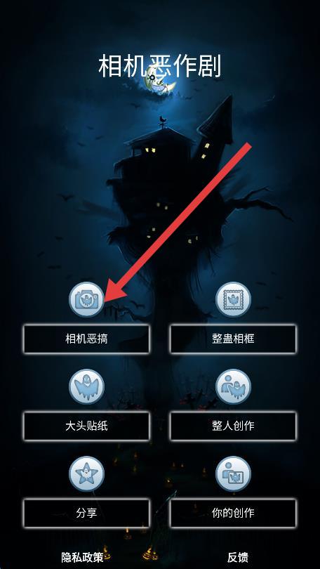1、打开相机恶作剧app,在主界面点击相机恶搞按钮。