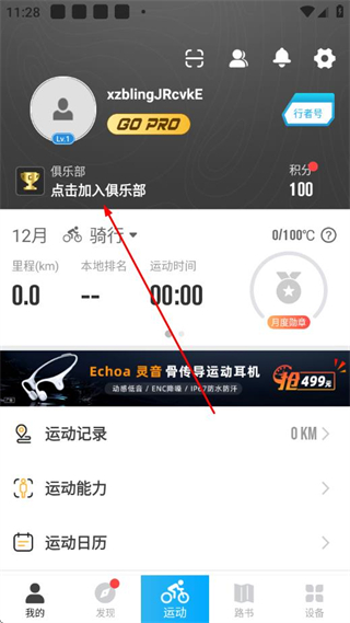 1、在行者app的“运动”页面,点击点击加入俱乐部,进入俱乐部页面。
