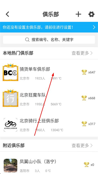 2、在俱乐部页面选择目标俱乐部,进入俱乐部详情页面。