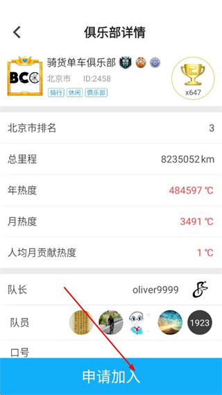 3、在俱乐部详情页面点击申请加入,提交加入申请即可。
