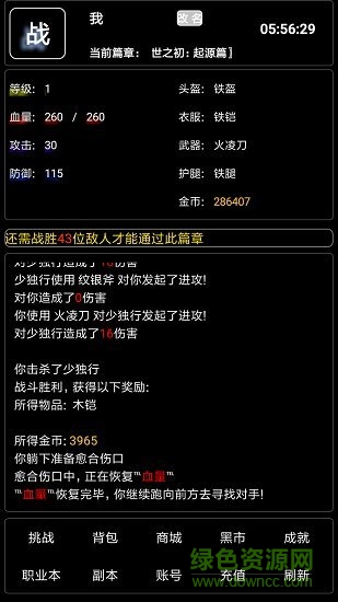 游戏介绍 游戏标签: 创世纪 文字游戏 创世纪是一款修仙类的文字游戏,喜欢玩武侠mud游戏的玩家们不要错过,自带挂机功能,适合时间不充足的休闲玩家们。欢迎大家来绿色资源网下载试玩!创世纪游戏介绍梦回太古,各大世纪武仙等你来战! 这是一款文字游戏,这是一段你从未涉足过的新纪元!创世纪无限金币版更新内容对游戏全局界面进行了整改添加了角色数据功能新增等级系统新增活动副本新增商城材料系统新增签到功能优化了背包新增了装备拆卸功能新增副本挂机功能优化了商城内容及界面 游戏截图 上一张下一张(1 / 1) 安装详细截图 猜你喜欢 文字游戏修改版 文字游戏修改版 文字游戏修改版 好玩的修改版文字游戏有哪些?小编在这里整理了男性向的文字游戏修改版、皇帝文字游戏修改版、修仙文字游戏修改版等,玩家在游戏中能升级,修炼,让你在游戏世界中体验最单纯的文字玩法。喜欢就来绿色资源网下载吧! 查看更多>> 流浪日记无敌无限金币版17yy 8.39M/中文/5.4/v1.21 安卓中文版下载 记情成卷内购 115.70M/中文/5.0/v1.0.0 安卓免费版下载 初水瑶内购 6.29M/中文/10.0/v1.6.7 安卓版下载 我就是要红内购 0KB/中文/1.0/v1.0.1 安卓无限闪币版下载 琴覆天下内购正式版 249.00M/中文/5.0/v1.0.0 安卓版下载 病毒呼救完美 62.50M/中文/10.0/v1.1 安卓版下载 文字游戏修改版 好玩的修改版文字游戏有哪些?小编在这里整理了男性向的文字游戏修改版、皇帝文字游戏修改版、修仙文字游戏修改版等,玩家在游戏中能升级,修炼,让你在游戏世界中体验最单纯的文字玩法。喜欢就来绿色资源网下载吧! 查看更多>> 流浪日记无敌无限金币版17yy 8.39M/中文/5.4/v1.21 安卓中文版下载 记情成卷内购 115.70M/中文/5.0/v1.0.0 安卓免费版下载 初水瑶内购 6.29M/中文/10.0/v1.6.7 安卓版下载 我就是要红内购 0KB/中文/1.0/v1.0.1 安卓无限闪币版下载 琴覆天下内购正式版 249.00M/中文/5.0/v1.0.0 安卓版下载 病毒呼救完美 62.50M/中文/10.0/v1.1 安卓版下载 其他版本下载 标题 大小 更新日期 下载 下载地址 Android版 MD5:2a8fcc10127c400ecae8cc3f7902801e 点击报错 软件无法下载或下载后无法使用,请点击报错,谢谢! 关闭报错反馈 请描述您所遇到的错误,我们将尽快予以修正,谢谢! *必填项,请输入内容 本类最新 弹跳角斗士汉化 v2.1.0 安卓版 方舟之路无限金币 v1.2 安卓版 矿路跑酷圣诞节金币版 v1.9.17 安卓版 放置烧烤店免广告 v1.8.10 安卓版 fancy pants短裤小子的冒险中文版 v1.2.0 安卓版 声之寄托2中文正式版(koetayo2) v1.1.1 安卓内购版 相关文章 winrar注册码 winrar4.0无限制正版注册码 用户评论 热门评论 最新评论 发表评论 查看所有评论(0) 昵称: 请不要评论无意义或脏话,我们所有评论会有人工审核. 字数: 0/500 (您的评论需要经过审核才能显示)
