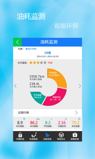 3.实时知车况:全面扫描车辆故障、实时跟踪车辆轨迹、随时了解车辆油耗、及时反映驾驶行为,安全驾驶出行无忧
