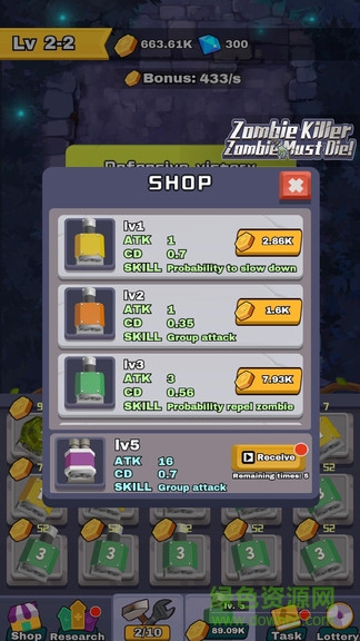 没有装备系统等,你只要不断的进行升级来提升它们的攻击力和射速即可