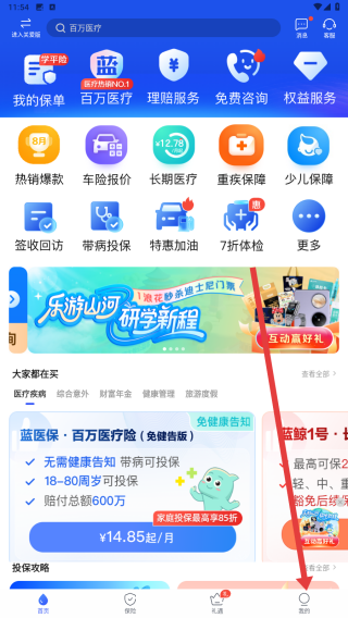 1、在太平洋保险应用首页中,点击底部我的按钮可以跳转到我的主页。