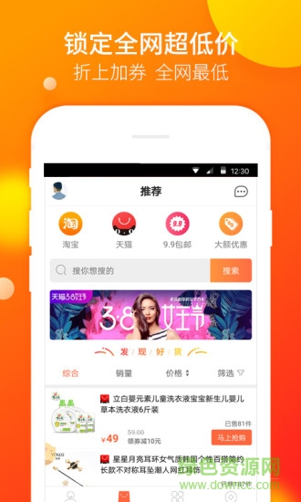 超级淘实惠的功能就像个团购管家,每天为您推荐一元白菜购、9.9包邮 大额优惠劵!