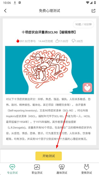 免费心理测试APP支持永久免费心理测试。为大家提供了专业测试、情感测试、职业测试。还有心理专家在线为你一对一指导,数十万网友互助问答!
