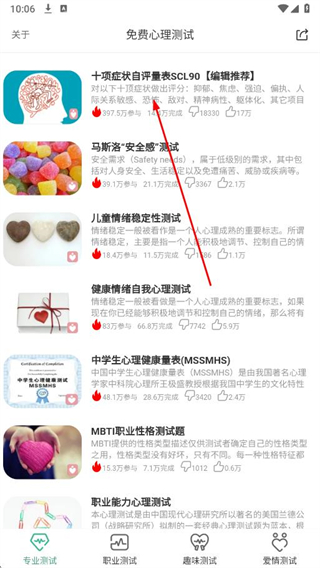 1、打开免费心理测试APP,在测试列表中选择想要进行的心理测试。