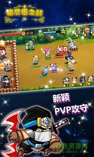 精灵蛋之战是一款画风Q萌的卡牌手机游戏,玩家将要抵御一波又一波的入侵保卫自己家园,游戏内设置了多个精美副本,每个副本奖励都不一样,你需要使用不同的英雄想方设法挑战每一个关卡,是一款非常适合打发时间的休闲手机游戏,喜欢就来绿色资源网下载吧!