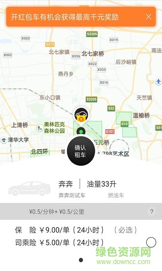 --预定:系统将自动为您筛选出附近可用的欢程共享汽车,轻松完成预定。