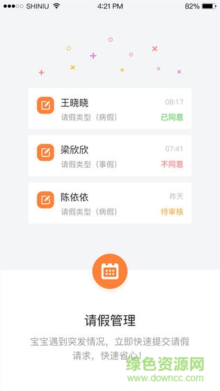 4、请假管家:宝宝遇到突发状况,立即快速提交请假请求,快速省心
