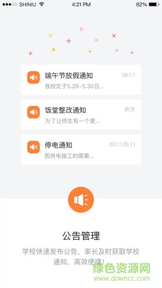 1、公告管理:学校快速发布公告,家长及时获取学校通知,高效便捷