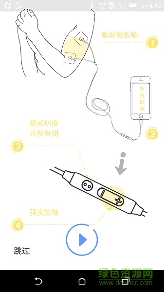 通过低频电流刺激皮下组织的方式让用户达到放松状态,只需手机App即可完成模式、力度、时间的一键调节,使手机成为能随时随地为用户健康服务的神器,把健康杀手变为健康助手。