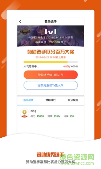 我是王者是一款专为王者荣耀游戏玩家打造的手机赛事app,汇集众多游戏大神,赛事活动举办游戏礼包好礼享不停,大神攻略视频观看轻松带你飞。快来绿色资源网下载体验吧!