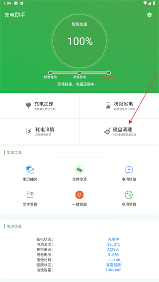 2、进入到首页内,点击磁盘清理的功能按钮。
