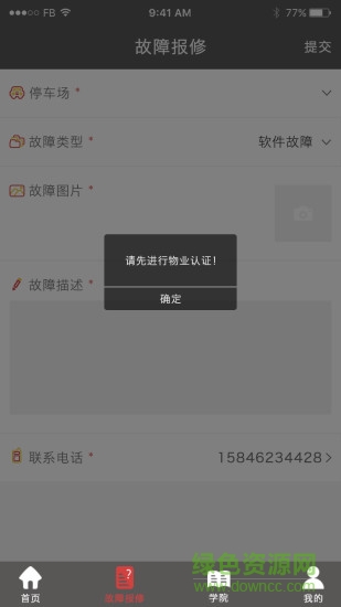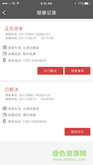 停车场负责人员可对停车场的故障问题,通过文字、图片等方式详细描述,并报修。