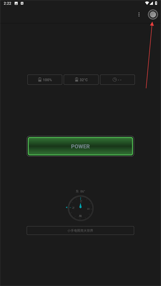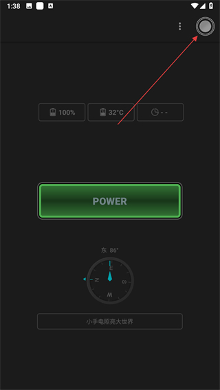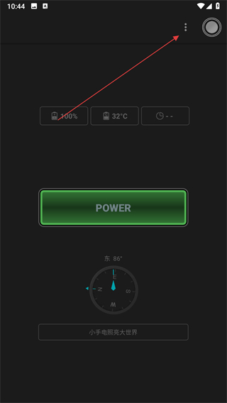 1、打开超级手电筒应用,在主界面点击三点菜单。