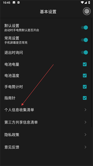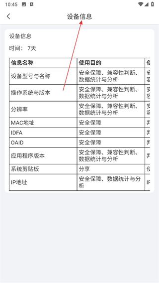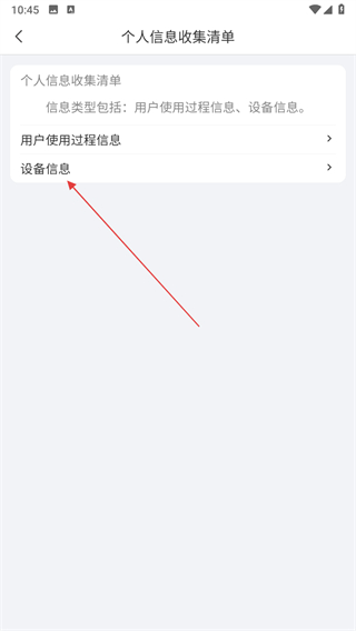 3、在个人信息收集清单页面中,选择设备信息选项。