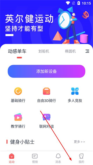 1、在英尔健运动的运动页面,点击底部的我的选项。