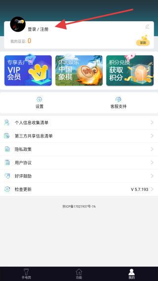 2、在个人中心页面内,点击登录/注册的区域。