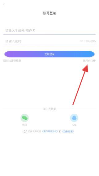 3、在账号登录右侧找到并点击新用户注册的功能按钮。