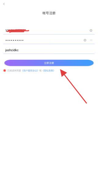 4、进入账号注册的页面下,输入手机号、密码后再点击立即注册的按钮即可。