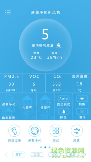建源新风app是四川建源节能科技有限公司推出的一款新风系统的智能家居应用,通过此应用远程操控新风机,了解室内外环境,达到提供洁净空气,充分满足室内换气率,灵活控制风机风量能、负氧离子及空气净化的目的。