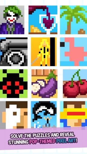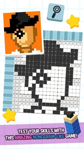 一个玩法独特的益智游戏。玩家利用游戏中提示的数字,在方块中涂上颜色,从而一步步揭示隐藏的图片。也被称为Nonogram,汉杰,绘图方块或Griddlers。五个专题关卡包囊括了丰富多彩的像素艺术插图,其中包括著名地标、动物、日常用品、电影和独特的挑战。