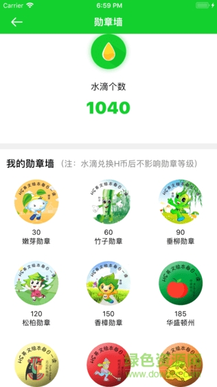 在【我的】--【我的勋章】里面查看自己的勋章墙!所获得的水滴总数!