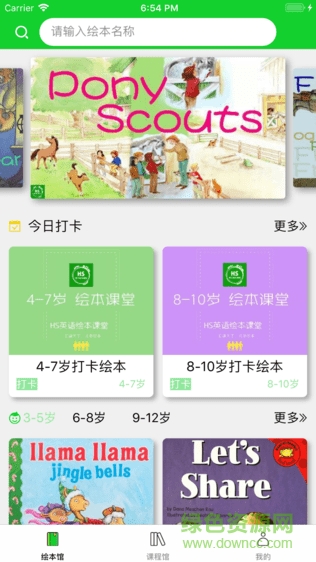 绘本馆:千余本绘本精选,包括动物,自然,科学,诗歌,日常习惯,生活常识,城市,以及“爱”…每一本绘本均有美国小朋友音频和中文翻译,单句跟读,练出地道口音。