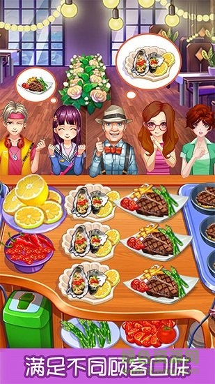 2、游戏中玩家扮演一名怀揣梦想的厨师,轻松驾驭多国菜肴。一边快速上菜,增长烹饪经验值,一边赚取金币和成就,扩张跨越全球的连锁餐厅帝国。