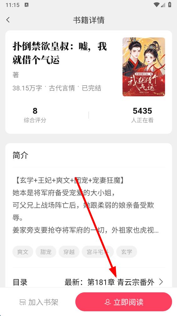 3、在书籍详情页,点击立即阅读按钮开始阅读小说。
