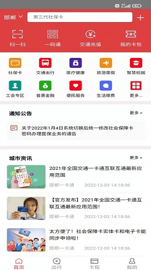 邯郸一卡通APP致力于结合第三代社保卡的相关业务为邯郸市民的生活提供公共服务及便民商业服务,基于一卡通介质来解决市民生活中多卡、多用的问题。