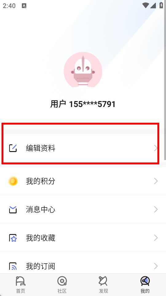 2、在个人页面里找到编辑资料选项,点击进入资料编辑界面。