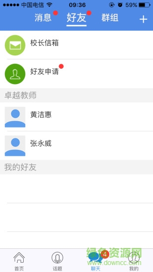 2.家长们可以在这里快速查找到孩子任课老师,家长和老师直接进入沟通