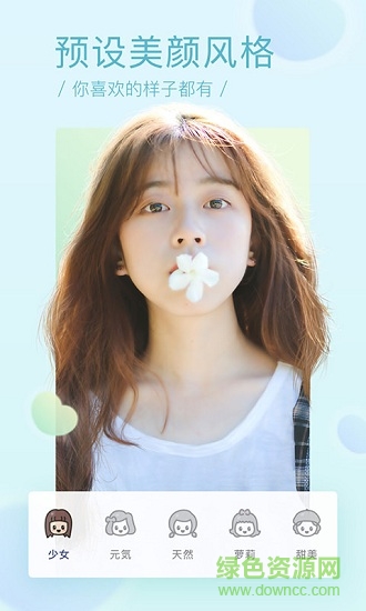 +风格挑选+ 自带8种人气原设的美颜风格,一键找到你的颜值高峰