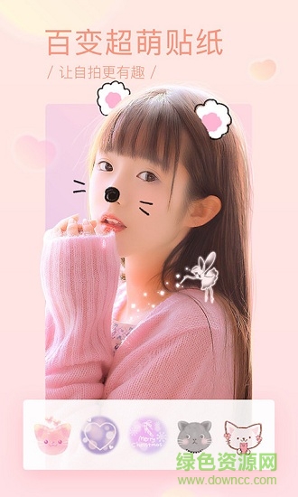 +贴纸萌拍+ 四个分类可爱动态贴纸,真正的卖萌神器,让你的每张自拍都好玩