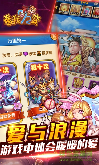 看我72变bt变态版是一款以西游为题材的回合制手游,游戏采用Q版人物设计,超多角色一一还原,遵循原著剧情,超多任务不断更新,玩法休闲娱乐性强,喜欢的朋友欢迎来绿色资源网下载!