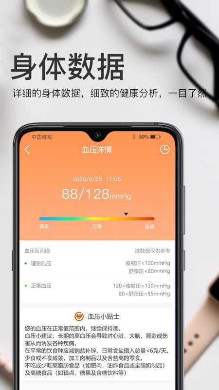 ·血压监测:只要实时佩戴智能手表,就会实时监测佩戴者的血压,也会在相应APP上显示血压数据